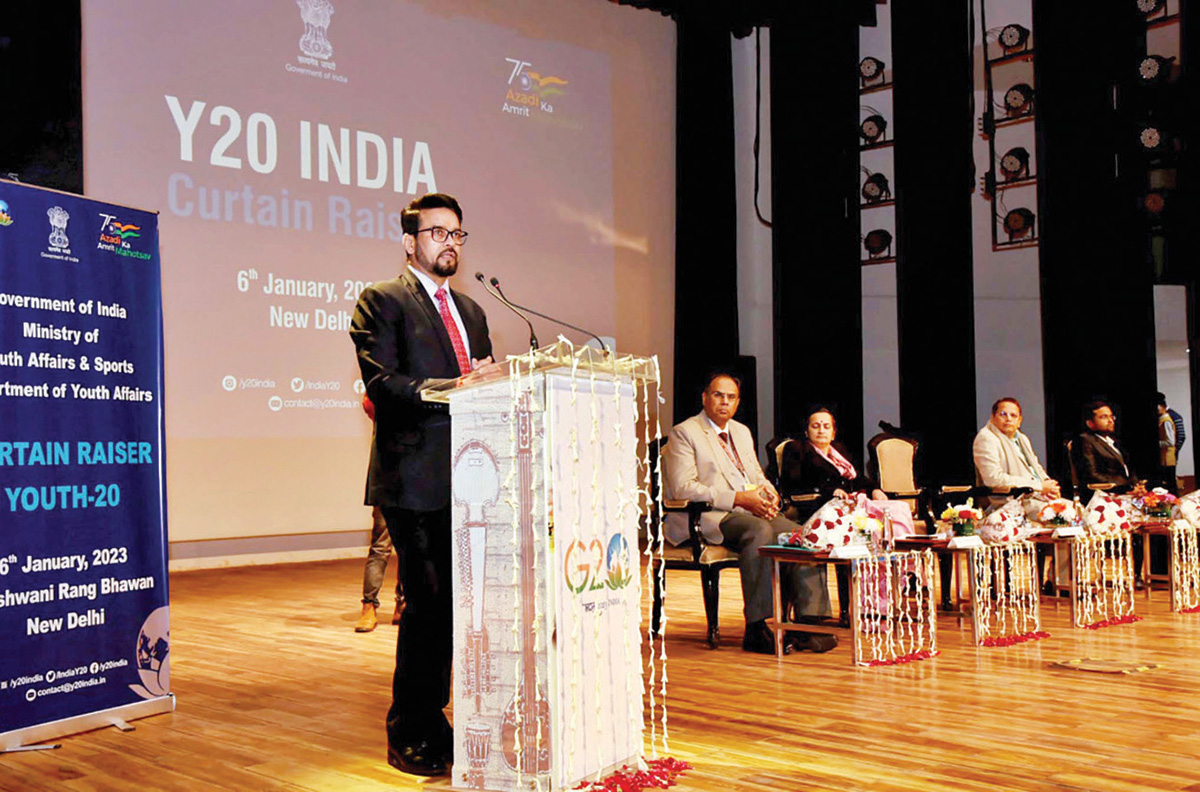 Launching the Y20 logo, website and themes at a curtain-raiser event on January 6 in New Delhi, Union Minister of Youth Affairs and Sports Anurag Singh Thakur said, “Today’s youth are ‘AGENTs of change’, where A stands for ‘advocate for a cause you believe in’, G stands for “go-green and embrace a sustainable lifestyle’, E stands for ‘equality and inclusivity – ensure that the spaces you are in are diverse, intergenerational and inclusive’, N stands for ‘nurture your physical and mental health’ and T stands for ‘tech-Innovation’”.