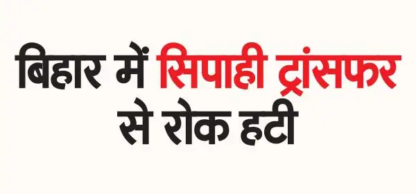 पटना। बिहार पुलिस के सिपाहियों के तबादले की राह खुल गई है। पटना हाई कोर्ट ने सिपाही ट्रांसफर के आदेश पर लगाई रोक को हटा दिया है। उच्च न्यायालय की खंडपीठ ने एकलपीठ के आदेश में आंशिक संशोधन करते हुए सिर्फ याचिकाकर्ताओं के तबादलों पर ही रोक जारी रखी है जबकि अन्य सभी सिपाहियों के तबादले से रोक हटाने का आदेश दिया है। बता दें कि 5 मई को एक साथ बिहार पुलिस के 19858 सिपाहियों का स्थानांतरण एक जिले से दूसरे जिले में किया गया था।