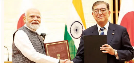 भारत और जापान के बीच कुल 13 करार हुए। दोनों देश रक्षा, आपूर्ति श्रृंखला मजबूत बनाने, निवेश, एआई, अंतरिक्ष, हाई स्पीड रेल, सेमीकंडक्टर, स्वच्छ ऊर्जा, फार्मा, खनिज, टेलीकॉम और तकनीक क्षेत्र में साझेदारी बढ़ाएंगे।