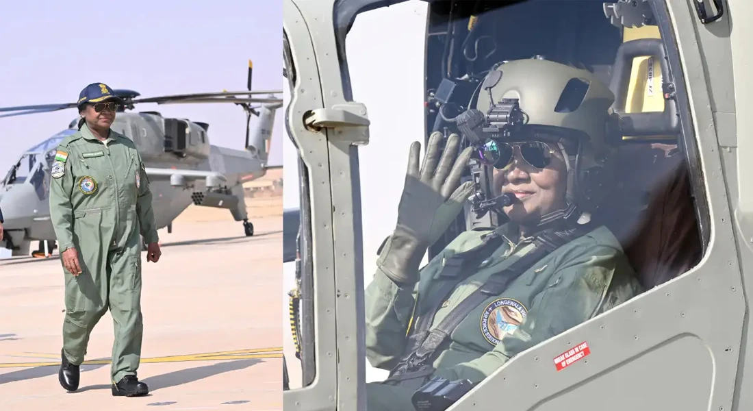 राष्ट्रपति ने कहा कि ‘प्रचंड’ हेलीकॉप्टर आत्मनिर्भरता का प्रबल प्रतीक है। इस समय मैं जैसलमेर के प्रसिद्ध किले के ऊपर से उड़ान भर रही हूं। मैं देश के वीर बहादुर सैनिकों को अत्यंत गर्व के साथ बहुत-बहुत धन्यवाद देती हूं। आप लोगों को मेरा प्यार भरा नमस्कार… जय हिंद, जय भारत।