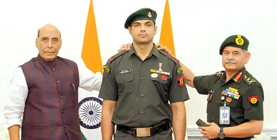 DEFENCE Minister Rajnath Singh formally conferred the gleaming insignia of the Honorary rank of Lieutenant Colonel in the Territorial Army to star javelin thrower and two-time Olympic medallist Neeraj Chopra during the pipping ceremony in South Block on October 22.
