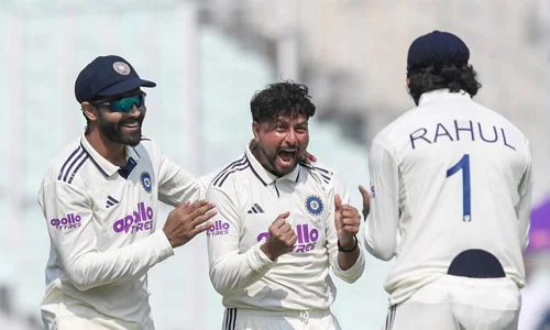 NEW DELHI: Jasprit Bumrah and Kuldeep Yadav picked three wickets collectively for India to keep South Africa in check as the visitors reached 105/3 in 27 overs at lunch on the first day of the opening Test at the Eden Gardens in Kolkata on November 14. Bumrah provided the early breakthroughs by removing the opening pair, while Kuldeep added to the pressure by dismissing skipper Temba Bavuma shortly after the drinks interval. At 71/3, the Proteas looked vulnerable, but Tony de Zorzi (15 not out) and Wiaan Mulder (22 not out) steadied the innings with a composed 34-run stand off 66 balls and ensured no further damage before the lunch break came.