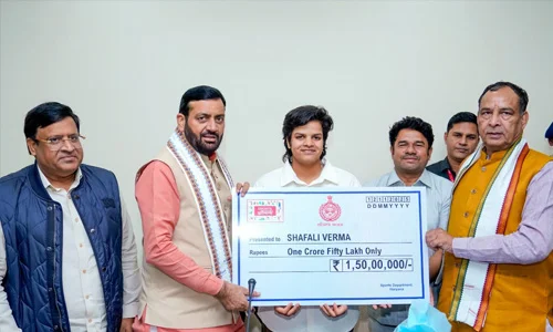 Saini presented the award at his residence, where Urban Local Bodies Minister Vipul Goel and Shafali Verma’s family members — her grandfather, father, and brother — were also present. The Chief Minister felicitated her with a memento and a shawl. Congratulating Shafali Verma and her family, CM Saini said Haryana is a hub of sports, and the daughters of the state have brought glory to the nation at the international level. He said the daughter of Haryana played a pivotal role in the World Cup final, helping India become world champions.