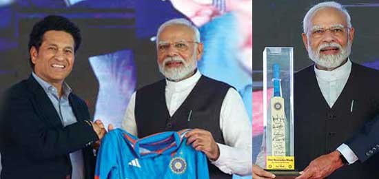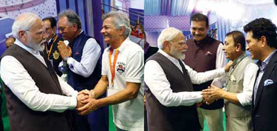 The highlight of the occasion was Sachin Tendulkar presenting a Team India jersey to PM Modi. No sooner had the Master Blaster presented the jersey, there was a thunderous applause from the crowd.
