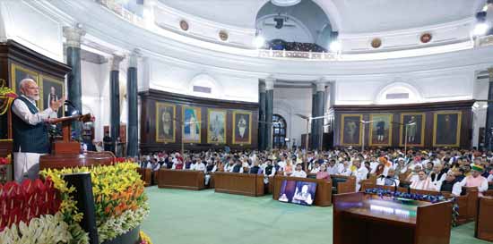 As the proceedings shifted to the new building, the Prime Minister announced that the old building will be called “Samvidhan Sadan” (Constitution House).