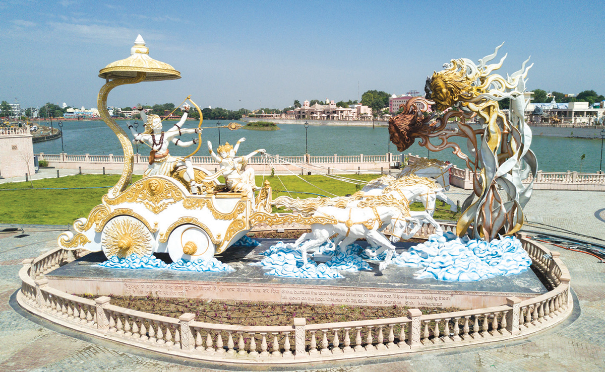 The concept of Mahakal forest, beautifully presented in the epic Meghdoot of Mahakavi Kalidas, has been given a physical form after hundreds of years. This is a unique and wonderful effort to give complete experience of Shiva glory to devotees visiting Ujjain from all over the world. One of the aspects of the Vistar Yojna’s first phase is a visitor plaza with two entrances or Dwaars – the Nandi Dwaar and the Pinaki Dwaar.