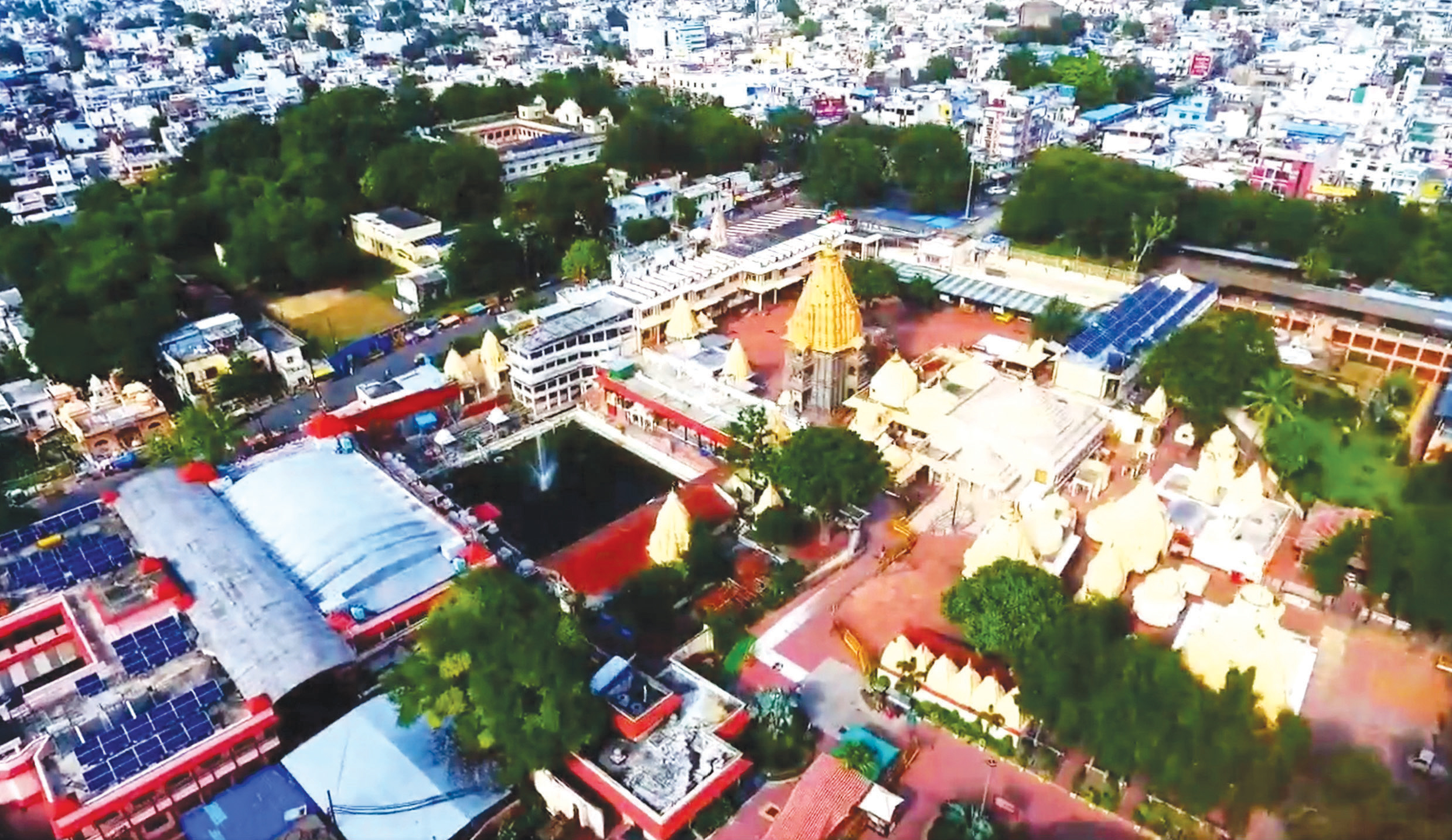 The visitor plaza can hold up to 20,000 pilgrims at a time. A circulation plan to reduce congestion has also been developed keeping in mind the entry of visitors into the city and their movement up to the temple. Decentralised parking has been provided at various entry points and vehicular movement into the expanded temple area has been restricted. Facilities like ticketing kiosks have been provided at the entry plaza.