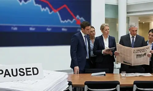 NEW DELHI: British business growth ground almost to a halt this month, as companies put their plans on hold while they waited to see if the incoming Government budget will raise the tax burden for a second year running, according to a major survey, reported Reuters.